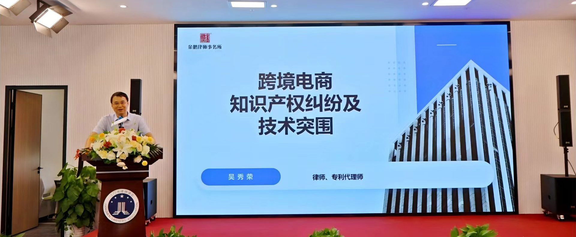 主讲人广东省律师协会涉外知识产权和信息安全法专业委员会副主任、广州金鹏律师事务所合伙人吴秀荣律师应邀到场作主题为《跨境电商知识产权纠纷及技术突围》专题分享。